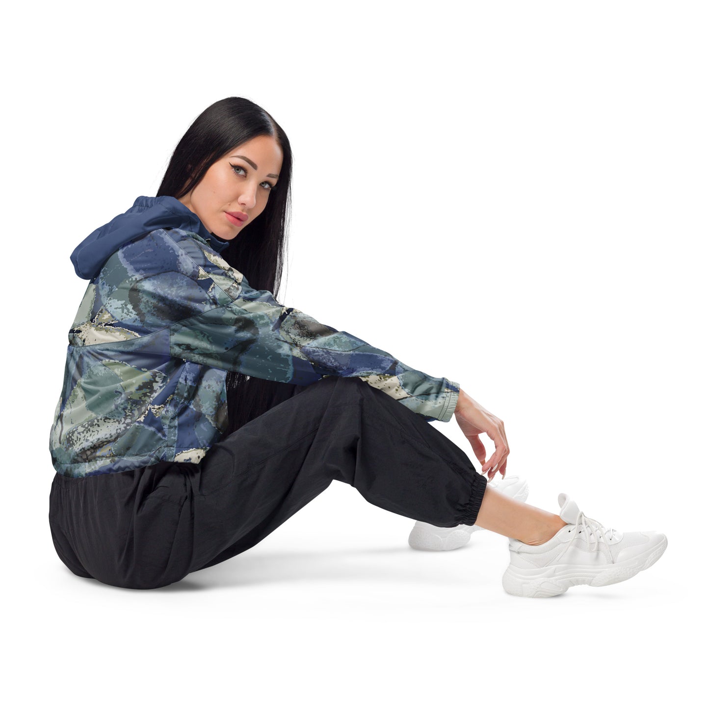 Hike in style without the rain getting in the way—this cropped windbreaker is lightweight, waterproof, and suitable for every kind of adventure. Features include side-slit pockets, breathable mesh lining, and adjustable drawcords on the hood and waist to support all your stylish outdoor looks.