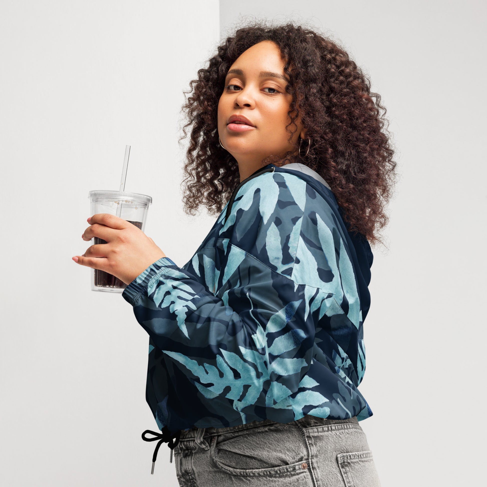 Hike in style without the rain getting in the way—this cropped windbreaker is lightweight, waterproof, and suitable for every kind of adventure. Features include side-slit pockets, breathable mesh lining, and adjustable drawcords on the hood and waist to support all your stylish outdoor looks.