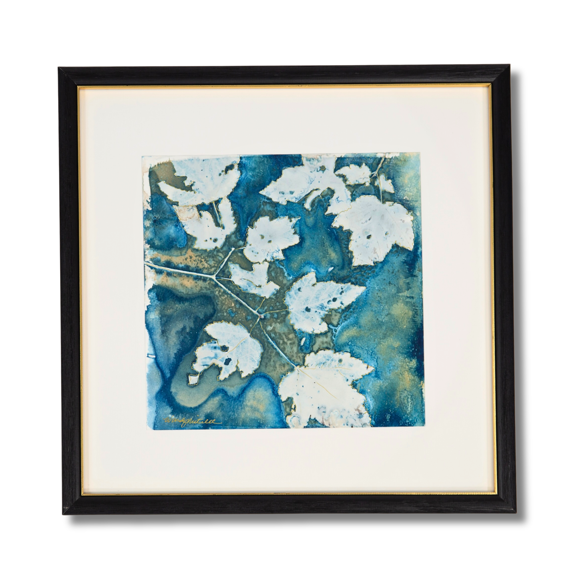 10x10" Original cyanotype embellished with gold pen (professionally framed to 16x16" black and gold frame)