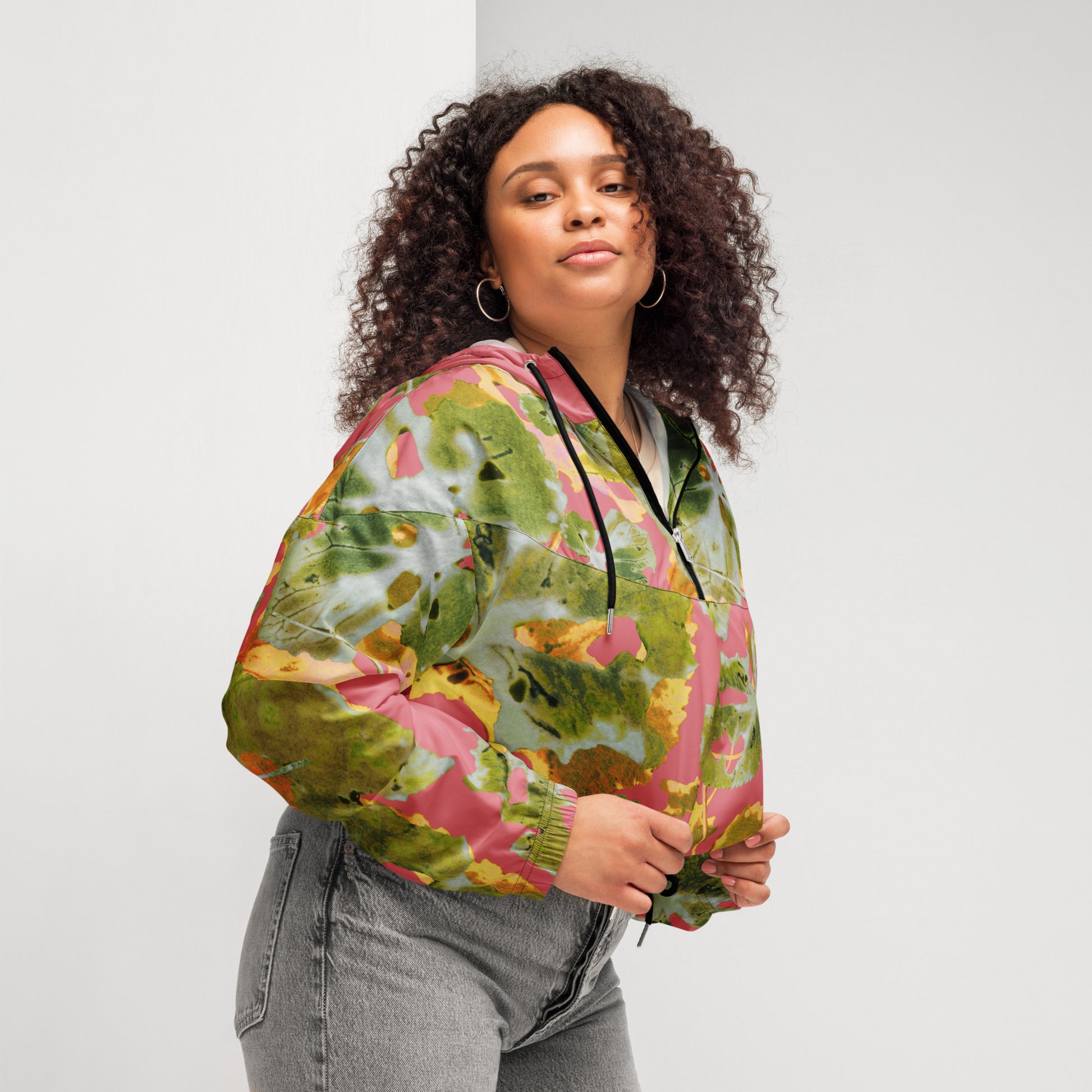 Hike in style without the rain getting in the way—this cropped windbreaker is lightweight, waterproof, and suitable for every kind of adventure. Features include side-slit pockets, breathable mesh lining, and adjustable drawcords on the hood and waist to support all your stylish outdoor looks.