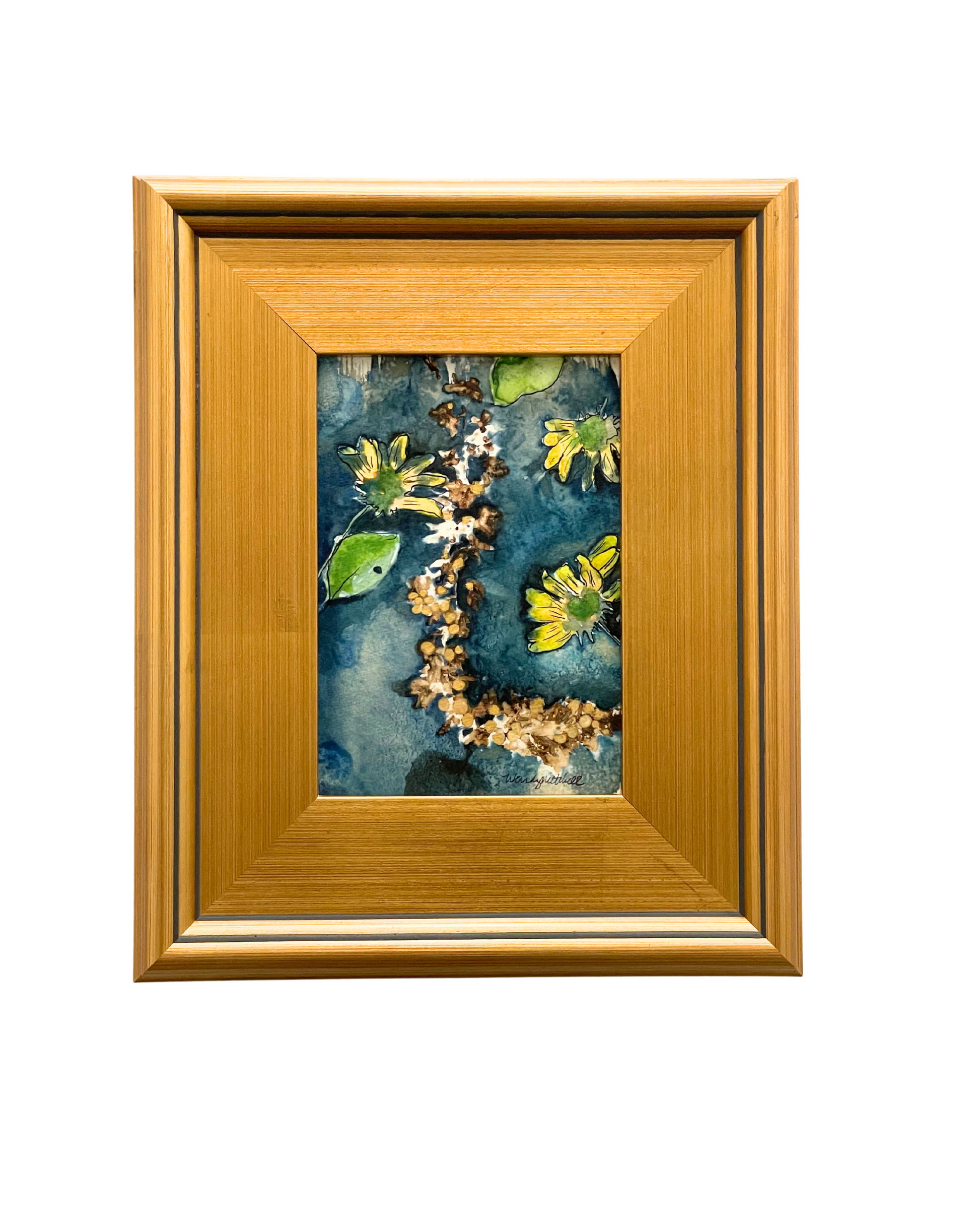 Collected with intention and reverence, Tide Offerings is a Cyanotype and watercolor, coastal mandala of seaweed and beach blossoms. Created after a shoreline walk, it’s a meditation on nature’s quiet gifts—washed ashore, arranged in a moment of saltwater stillness.