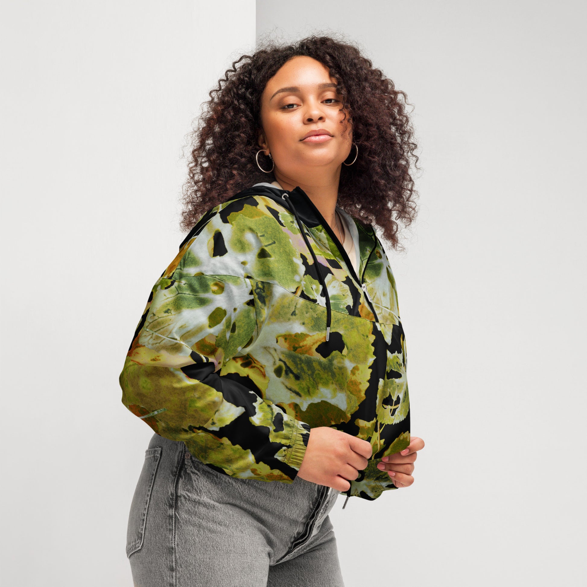 Hike in style without the rain getting in the way—this cropped windbreaker is lightweight, waterproof, and suitable for every kind of adventure. Features include side-slit pockets, breathable mesh lining, and adjustable drawcords on the hood and waist to support all your stylish outdoor looks.