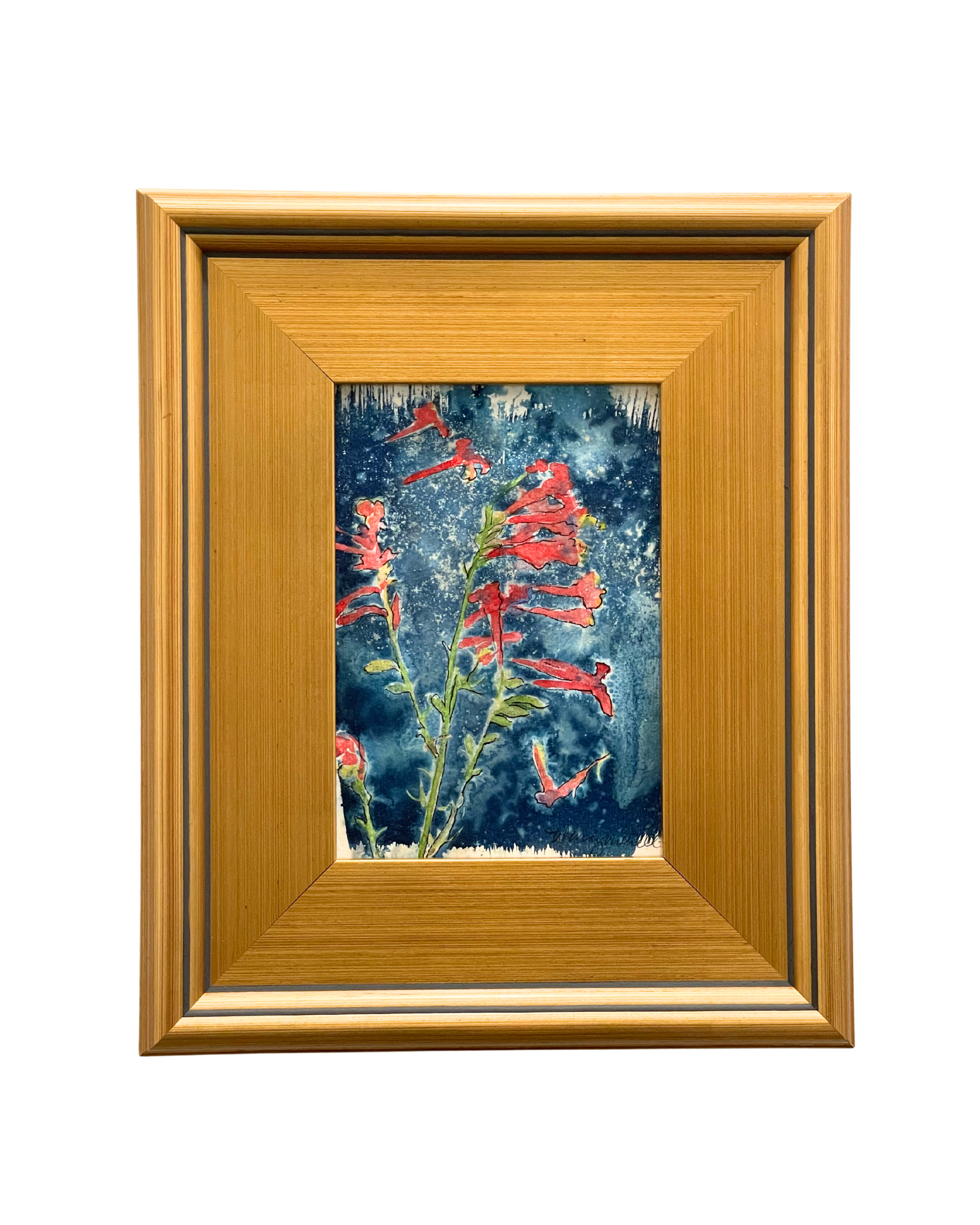 A vivid Cyanotype bloom, bold and sun-kissed, reaching toward late summer skies. This piece, embellished with watercolor, captures the last whispers of warmth—when wildflowers lean into the light and everything feels alive. A celebration of color, growth, and joy before the season shifts.