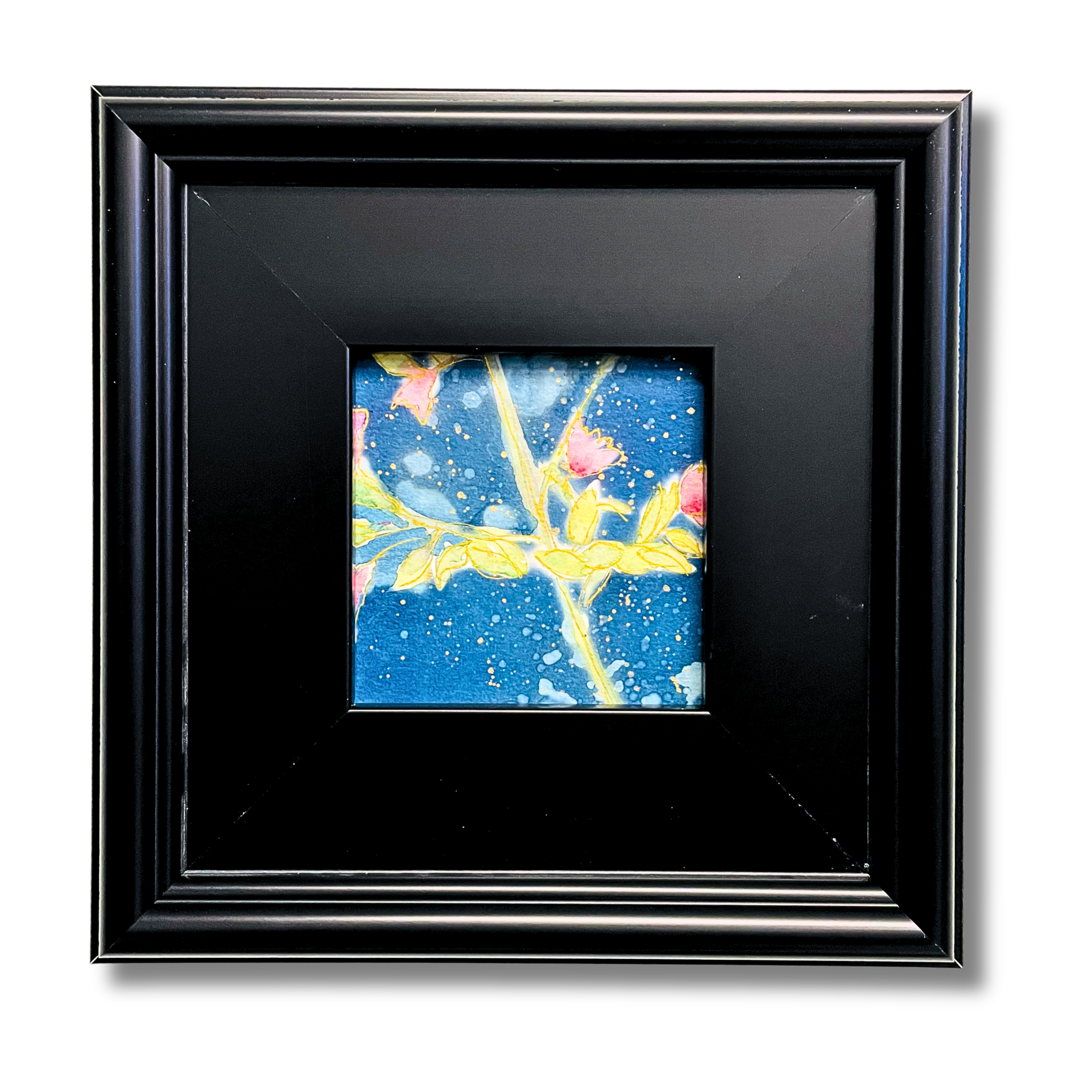 Frame size 9.5x9.5" black wood frame